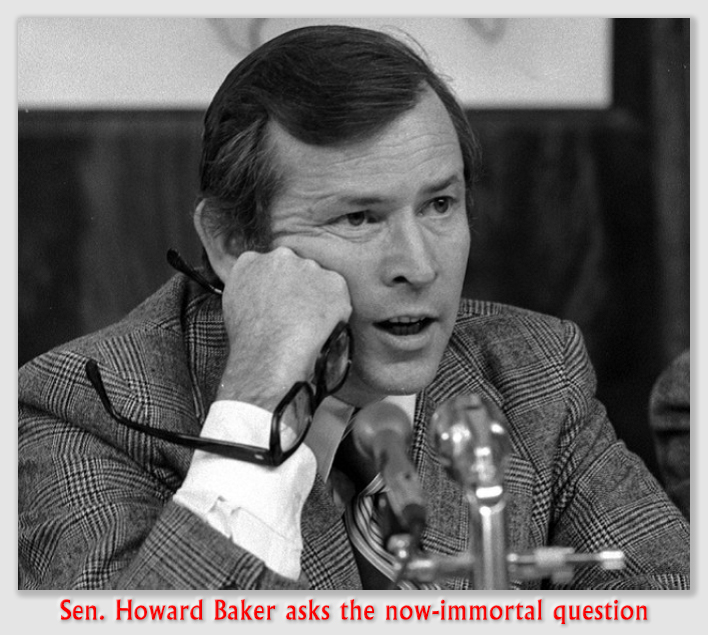 One of the enduring lines from the endless (or so it seemed at the time) Watergate investigation was Howard Baker’s famous question, “What did the president know and when did he know it?” On the answer to that question turned the culpability of the President for the high crimes and misdemeanors of his minions. It still does, despite the fact that we now know that the Watergate investigation timetable was a rocket ship compared to Whitewater-Lewinsky, Valerie Plame, Benghazi–Fast and Furious–IRS, January 6th, E. Jean Carroll, Stormy Daniels, and (now) Joe Biden’s health.