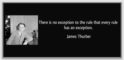 It’s a great old saw, but as logicians like to point out, “every rule has an exception” is a logical fallacy. As if anyone could possibly know every rule, so that he or she could be sure that every rule had an exception (sort of like the people who claim no two snowflakes are alike: how could they possibly know that?).