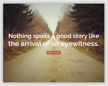 As Mark Twain was reputed to have once said, nothing spoils a good story like the arrival of an eyewitness.