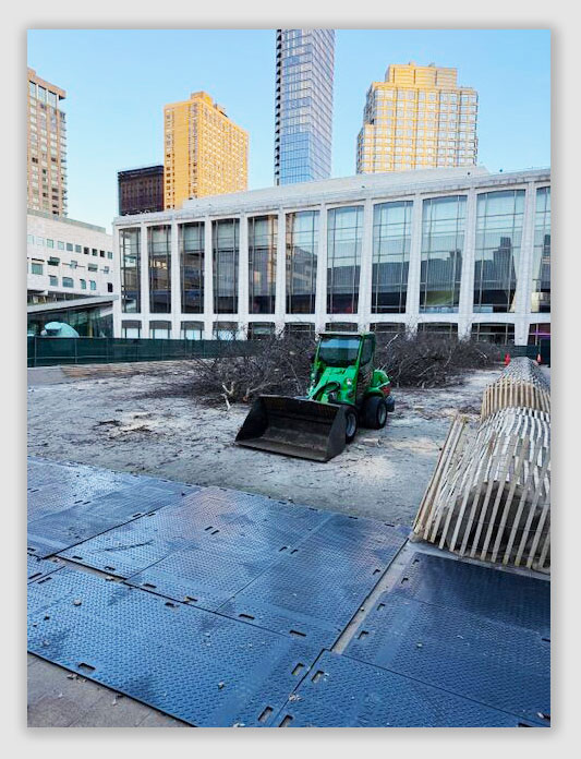 In the past week, dozens of trees were removed from the Lincoln Center Plaza on the Upper West Side. Specifically, the trees were removed from the Barclay’s Capital Grove within the plaza, situated near West 66th Street, between Amsterdam and Columbus. Multiple locals reached out to West Side Rag in recent days, questioning why Lincoln Center had undertaken the tree-removal decision. “What’s going on with the removal of the mature trees in Lincoln Center?” Rebecca Ships wrote to the Rag. “I was shocked by what I saw yesterday and wondering what is going on.” We reached out to Lincoln Center, which explained that the specific trees had been “struggling.” “We’re currently undertaking work on the Barclay’s Capital Grove on Hearst to improve drainage and soil systems,” a Lincoln Center spokesperson wrote in an email. “The trees were struggling, unfortunately. We had lost some in recent years. In collaboration with consultants and arborists, this work will support healthier growth and create a strong foundation for the new trees to thrive…”