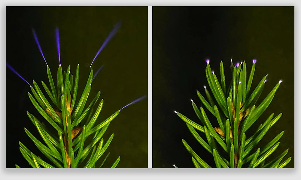 In June 2024, a group of Penn State meteorology and atmospheric science researchers set out on a road trip along the East Coast in a modified 2013 Toyota Sienna. The van was outfitted with a custom-built telescopic weather instrument extending from the roof. Their goal was to track down Florida’s near-daily summer thunderstorms and observe a phenomenon that had never been confirmed outside a laboratory. That phenomenon, known as corona discharge, involves tiny bursts of electricity forming at the tips of leaves. These faint electrical pulses can cause treetops to emit a subtle glow in the ultraviolet (UV) range. Scientists have suspected for more than 70 years that forests might produce these effects during storms due to unusual electric field activity, but direct evidence in nature had remained elusive…