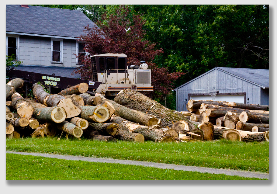 If you’re dropping trees this close to the neighbor’s house, you just may have a bill for treble damages in your future.