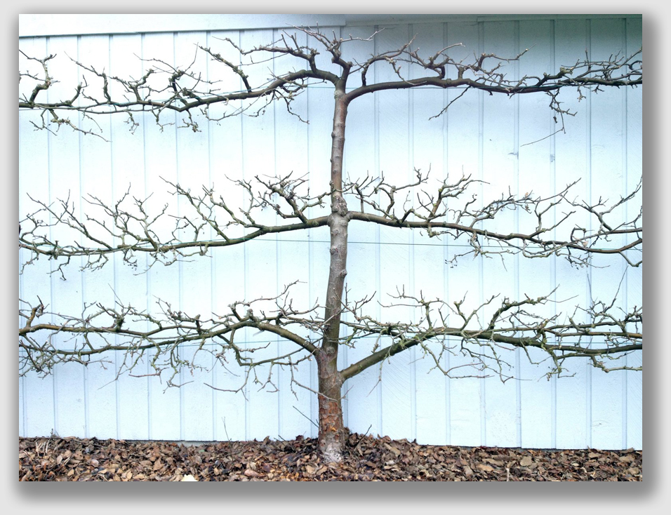 If you’re in the market for an apple or pear tree this spring, consider buying an espaliered tree. Espalier is a form of pruning where a tree is trained to grow flat, usually against a wall or fence. There are a number of forms to choose from but I find the easiest and most attractive is to train multiple tiers of branches (usually three) to grow horizontally from a single vertical trunk. There are a number of reasons I recommend espalier over growing an apple or pear tree in an upright form. First of all, espaliered trees are attractive. Once established, they are living sculptures and often become a focal point in the garden. At the same time, espaliered trees take up less space than an upright tree. They’re also easier to care for than an upright tree. In espaliered trees, the majority of the energy is concentrated in production of fruit-bearing wood. Pruning generally consists of cutting back upright growth above long-lasting fruiting buds and maintaining the desired form by removing outward-growing branches. Upright-growing trees, on the other hand — especially ones pruned hard to control for size — tend to produce gazillions of unproductive vertical shoots that must be removed on a yearly basis to allow air and light to penetrate into the canopy …