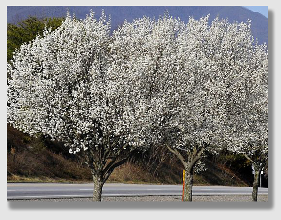 There are two times a year when the public can really see the full extent of the Callery pear infestation of our fallow fields. And, make no mistake about this. Today’s fallow fields are tomorrow’s forests. The times when this infestation is most obvious is in the spring when these pears can be seen blooming by the millions, and in the fall when Callery pears show their red color on waxy leaves that don’t decompose. The picture of this fallow field located between two subdivisions sadly misplanted with Bradford pears illustrates this point. The wild pears depicted here are the progeny of Bradford pears. They are Callery pears, a reversion to the ancient pear trees found wild in the mountains of China. In 1918, in an effort to crossbreed wild Callery pears with fruit producing Bartlett pears, seeds were gathered by scientists from the USDA. It was hoped that cross breeding would lessen the problem desirable fruiting pears were having with the dreaded disease of fire blight…