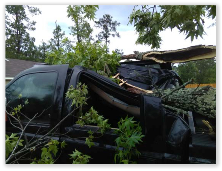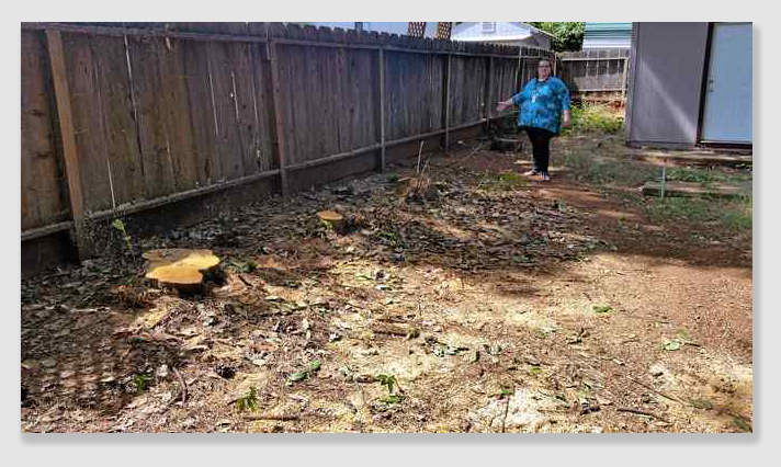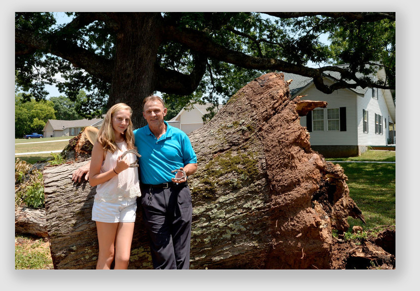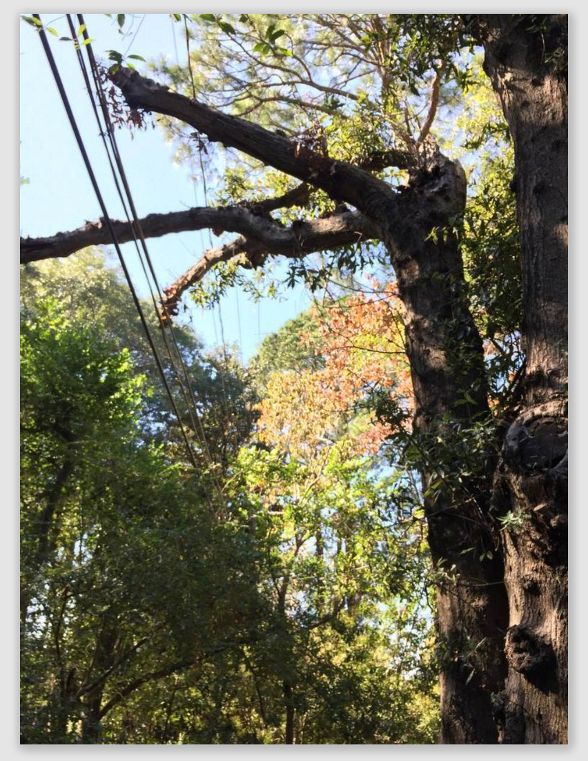 When the clouds cleared from Tuesday’s tornado outbreak, Rhonda Clair made a disturbing discovery in her backyard. “I had approximately 40-foot of a tree in my yard,” she said, “And the remainder of the tree was actually resting on the line.” It was the second time in a year the Clairs had a close call with their neighbor’s trees. The last time, the top half of a tree crashed into their fence. Today, the rest of that tree still stands, dying, and according to Clair, destined to fall any minute. So she was happy to hear the contractors, hired by Cleco to remove the most recent storm damage from the power lines, wanted to do more while they were there. “They said we’re going to take down all the dead trees,” Clair recalled, “But he said, ‘Unfortunately, that one is 60 feet tall,’ and he showed me where it has numerous holes in it and it’s too dangerous to put a man up in that tree to climb …”