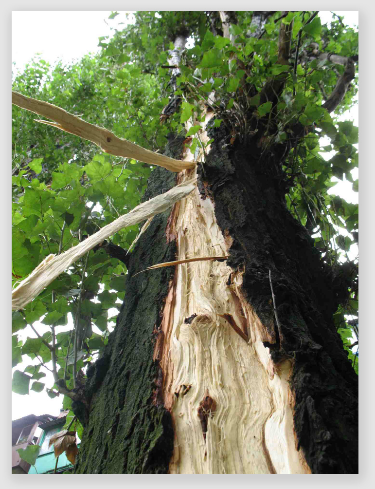 No tree is perfect. Sure, saplings probably grow up leafing through Cosmopolitree magazine, hoping to look like their “Arbie” dolls someday, but often they develop imperfections. The vast majority of these are benign, but some can be dangerous. To avoid breakage of large limbs and associated flying lawsuits and debris, trees with obvious defects are often removed. But since many problems are a result of our activities, it hardly seems fair to send a mature shade tree to that great arboretum in the sky if there’s an alternative. A common but usually correctable problem is called narrow forks. This type of defect can be fixed when the union is small by a mere snip of a hand pruner. If this is not done, the defect gets weaker over time. If there is a valuable target (swing set, house, Faberge egg) that could be struck if one side splits off, corrective action is needed. Have a professional evaluate the tree. If it is in very bad shape, it may need to go, but if is healthy other than the weak union, a cable system could be installed …